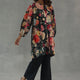 Striking and sophisticated, the rose dusk kurta set features a short kurta with tapered pants, brought to life with bold, oversized florals in vibrant hues set against deep, moody tones. A statement in itself, this set blends artistic flair with contemporary ease.