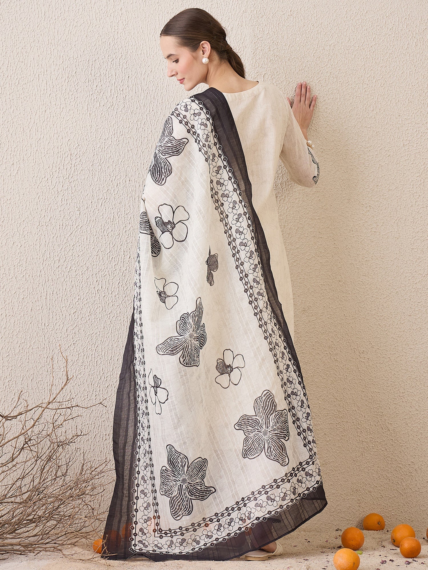 Elegant Off-White & Black Handblock Printed Cotton Suit Set
