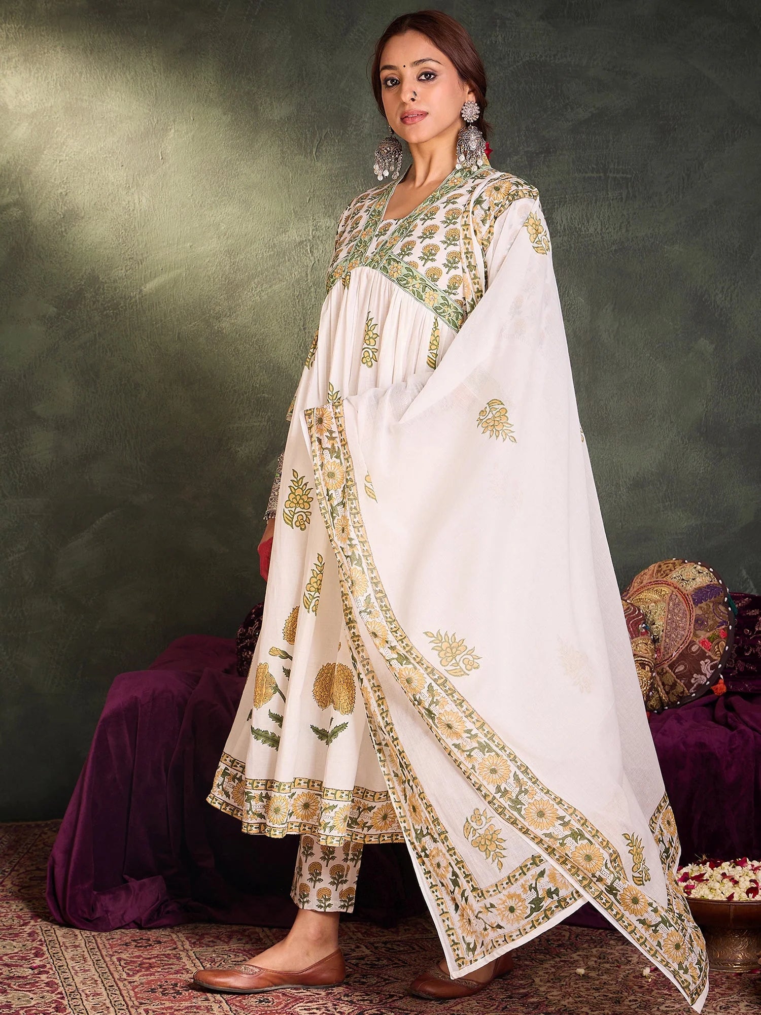 Lvory & Green Handblock Printed Anarkali Suit Set