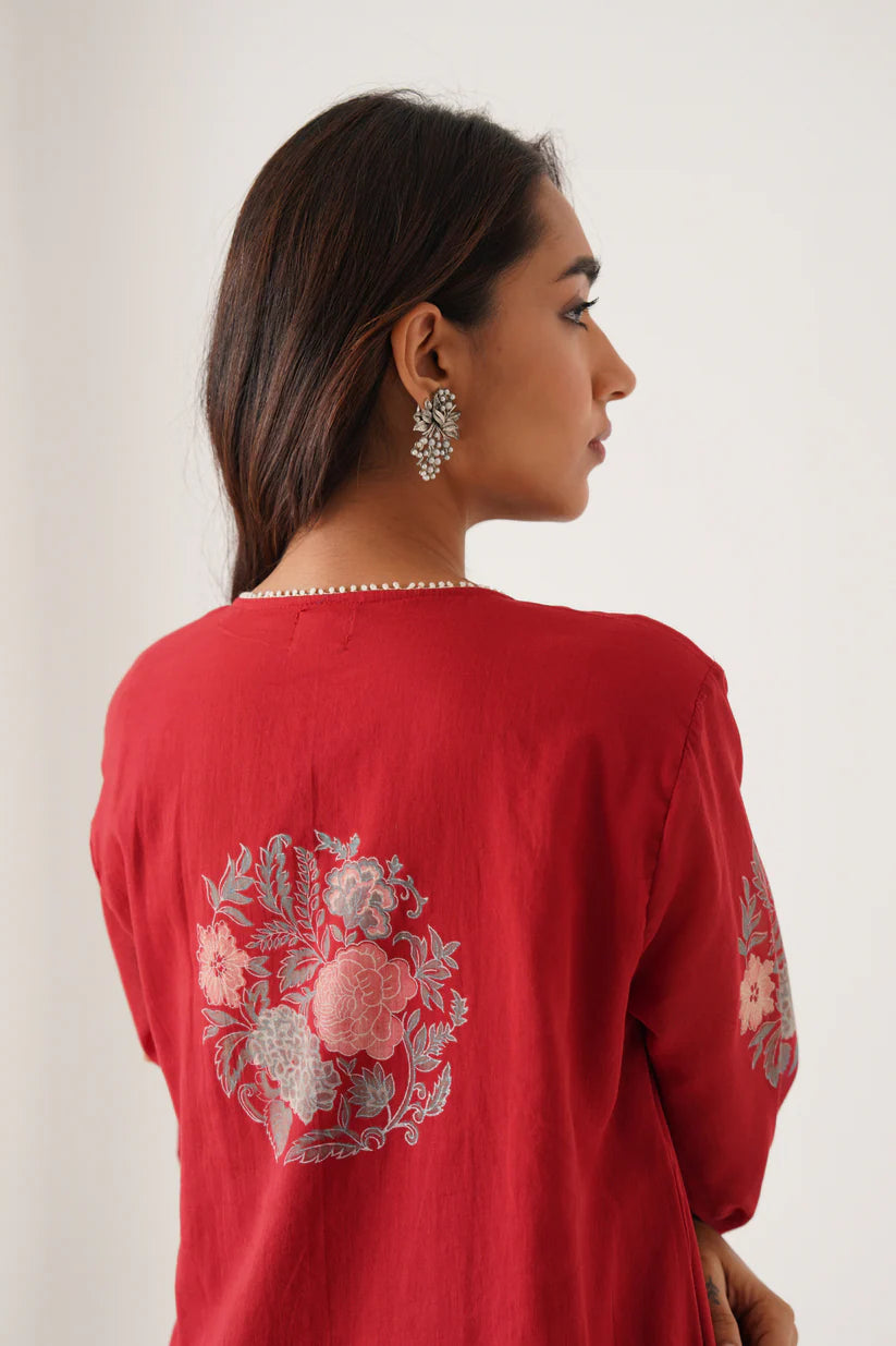 Crimson Bloom Floral Kurta Set
